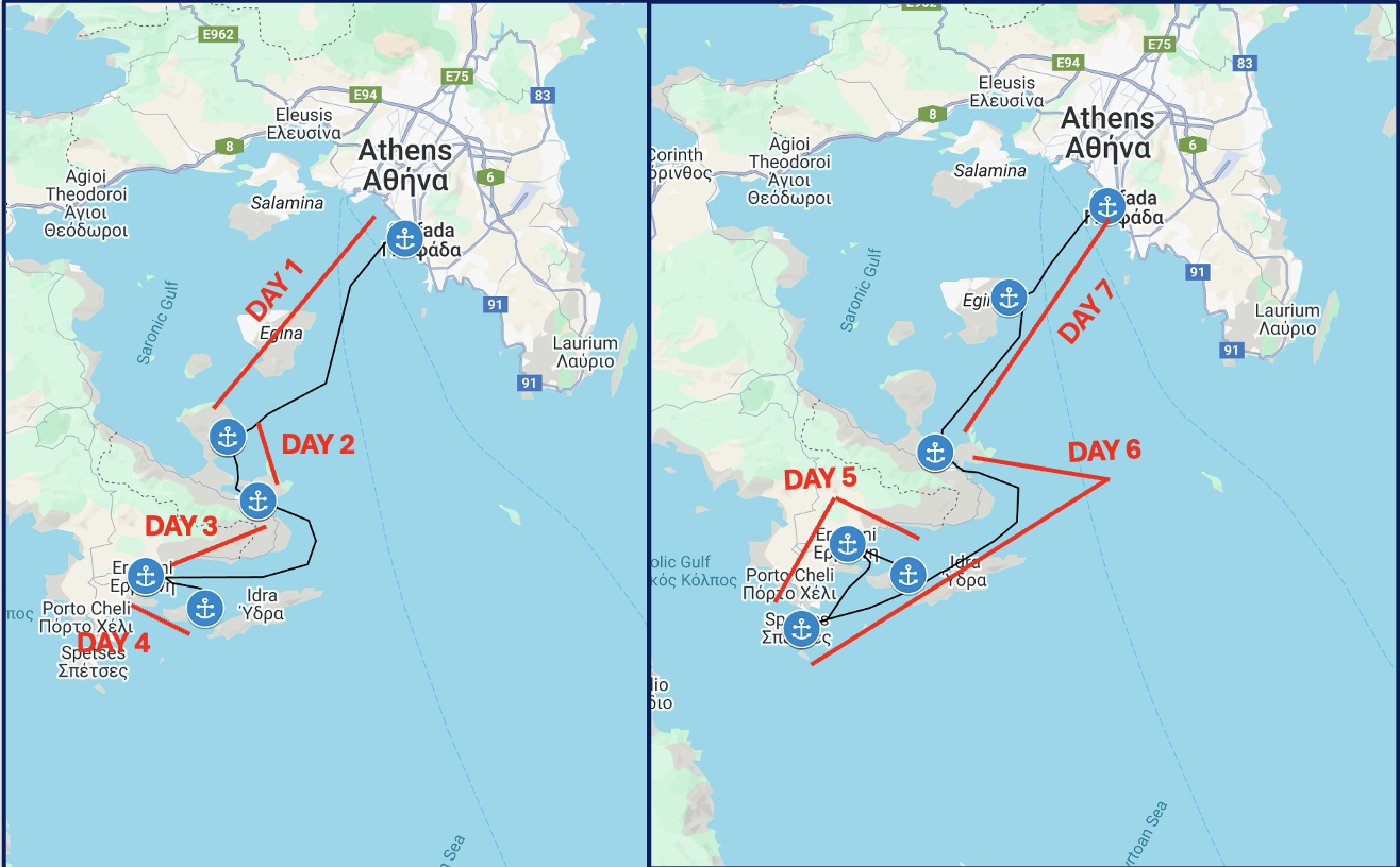 | Details of Voyage | Crew, Helmsman on 7-day flotilla in the Saronic Islands in Greece. |